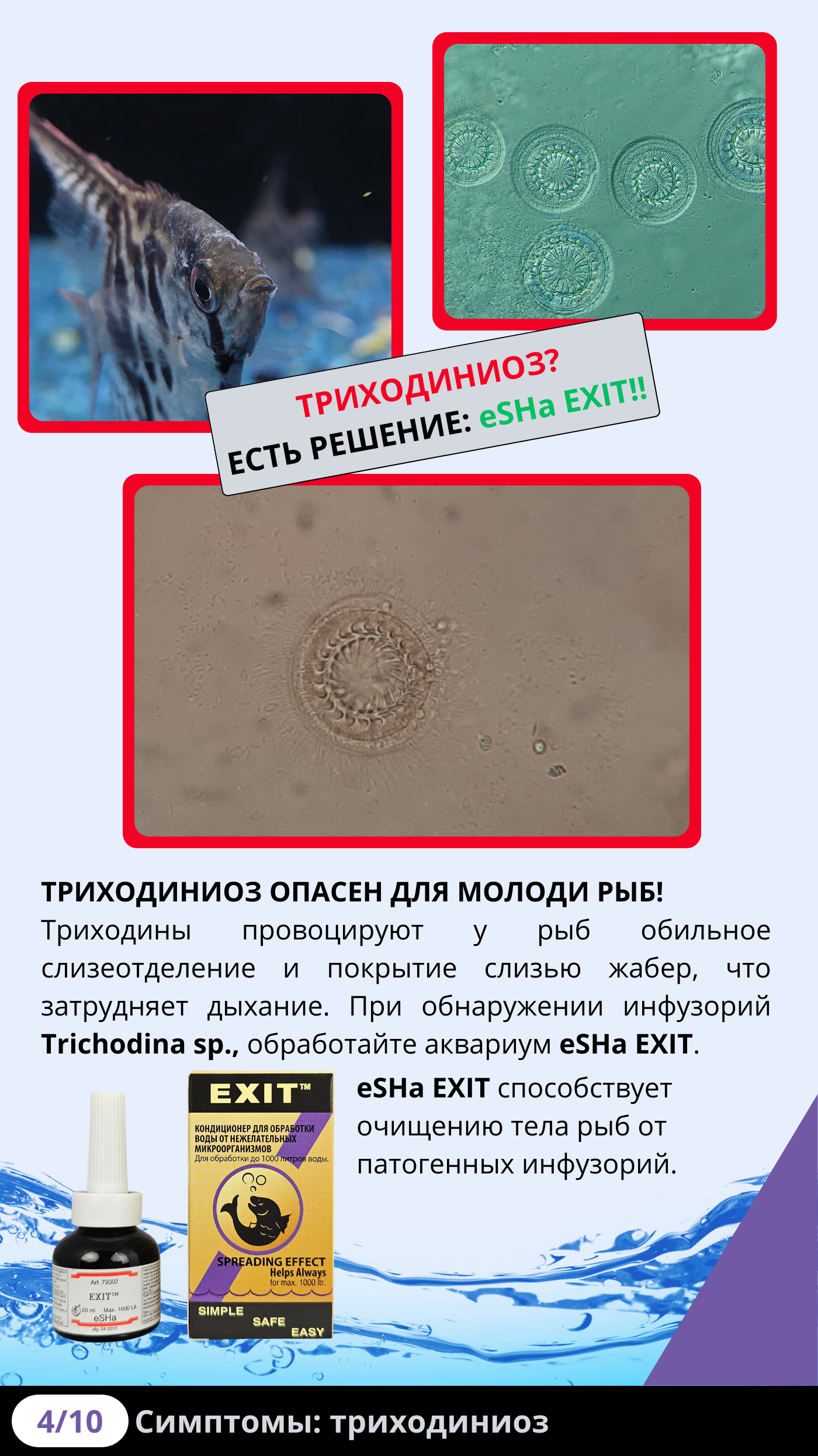 ООДИНИУМ, ИХТИОФТИРИУС ("манка"), ИХТИОБОДО, ТРИХОДИНА, ХИЛОДОНЕЛЛА, ТЕТРАХИМЕНА